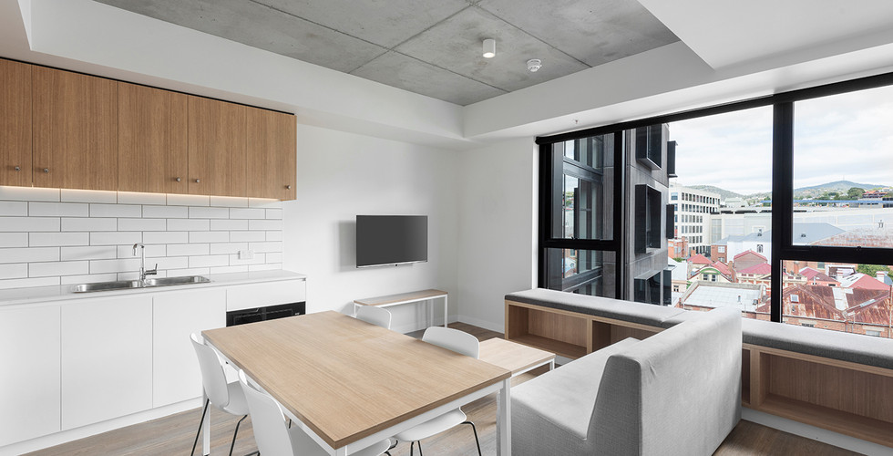 Hutchinson Builders, in partnership with Tetris Capital, have recently reached completion and subsequently Commercial Acceptance of the 13-storey student accommodation development for the University of Tasmania in Hobart. The project at 42 Melville Street involves 422 beds of accommodation as well as additional university areas which will support UTAS’ growing presence in the Hobart CBD.